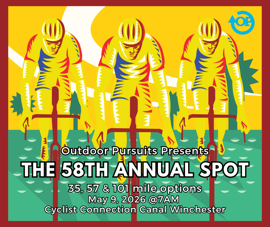 SPOT is the second event of our traditional Cycling Series. Flat roads and some rolling hills to the southeast of Columbus with distance options of 35/62/100 miles.