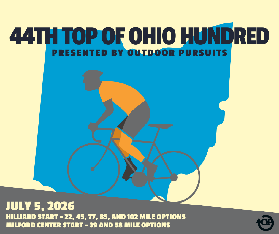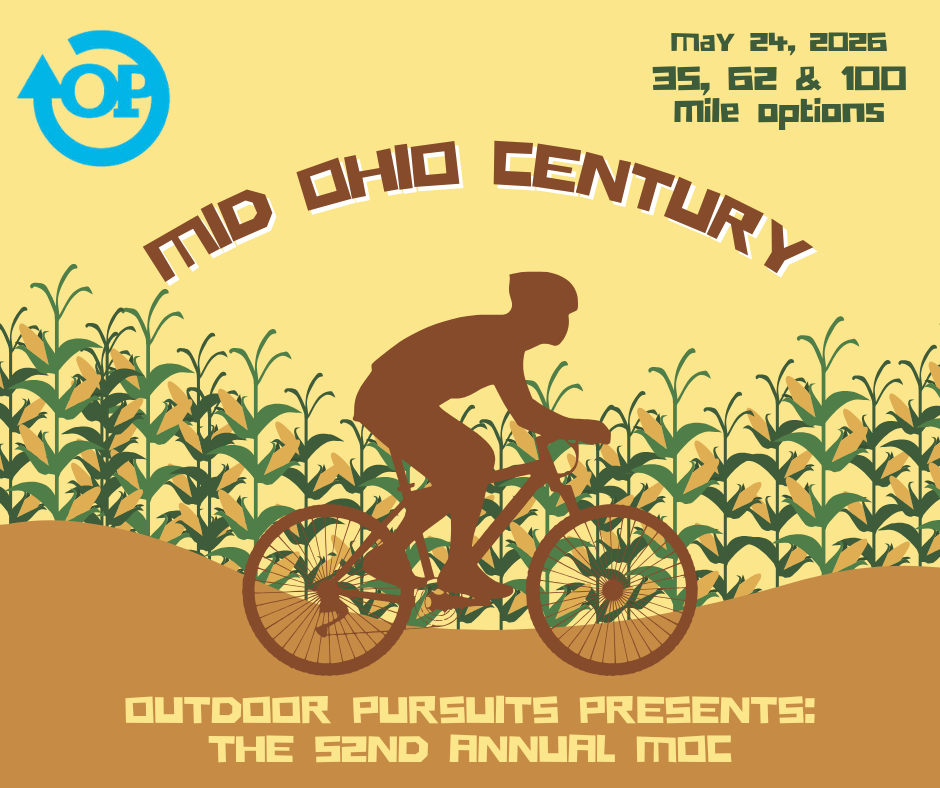 The traditional first event of the Outdoor Pursuits Cycling Series is a smart way to prepare for your season. Flat roads and light traffic to the north of Columbus, and the routes include some miles on the Ohio to Erie trail while visiting the towns of Galena and Sunbury. Longer routes go to Delaware, also. The distance options are 33, 60, or 97 miles, and include the newly opened “high” bridge over Big Walnut Creek north of Sunbury.